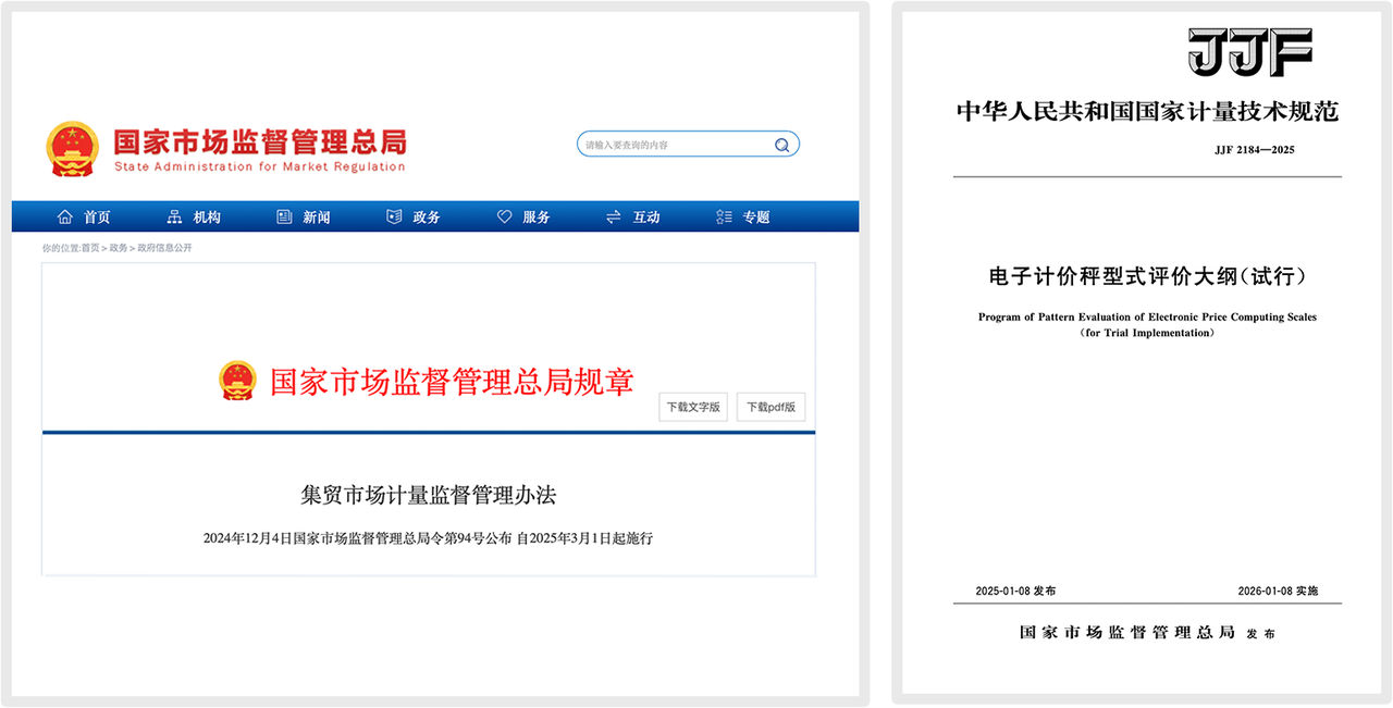 為應對農貿市場存在的計量作弊問題,國家市場監督管理總局近期出臺了一系列強制性法規與技術規范,標志著行業將進入一個全新的、以技術防作弊為核心的合規時代。本文將解析《集貿市場計量監督管理辦法》(總局令第94號)及《電子計價秤型式評價大綱(試行)》(JJF 2184-2025)的核心要求,這并非一次簡單的規則重申,而是電子計價秤產品本身發起的一場產業升級。通過設定技術要求與明確的法律時限,系統性地重塑產品的設計邏輯與生產標準。